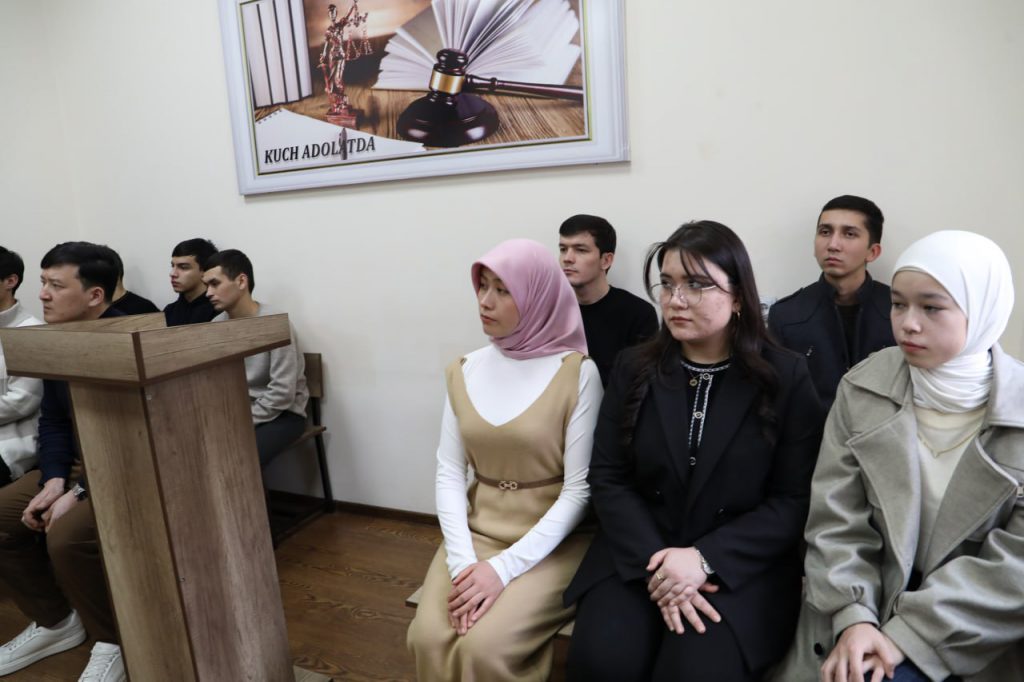 Талабалар дастлаб фуқаролик судида ташкил этилган рақамлаштириш жараёнлари билан танишди. Шундан сўнг суд залида бўлиб ўтаётган суд процесслари гувоҳи бўлишди. Талабалар медиация хонаси билан танишдилар.Фуқаролик ишлари бўйича Миробод туманлараро суди раиси Б.Сагатов талабаларга жорий йилда туманлараро судида амалга оширилган ишлар, рақамлаштириш жараёнлари, медиация хонасида ажрим ёқасига келиб қолган оилалар билан ишлаш, унинг натижалари бўйича маълумот бериб ўтди.